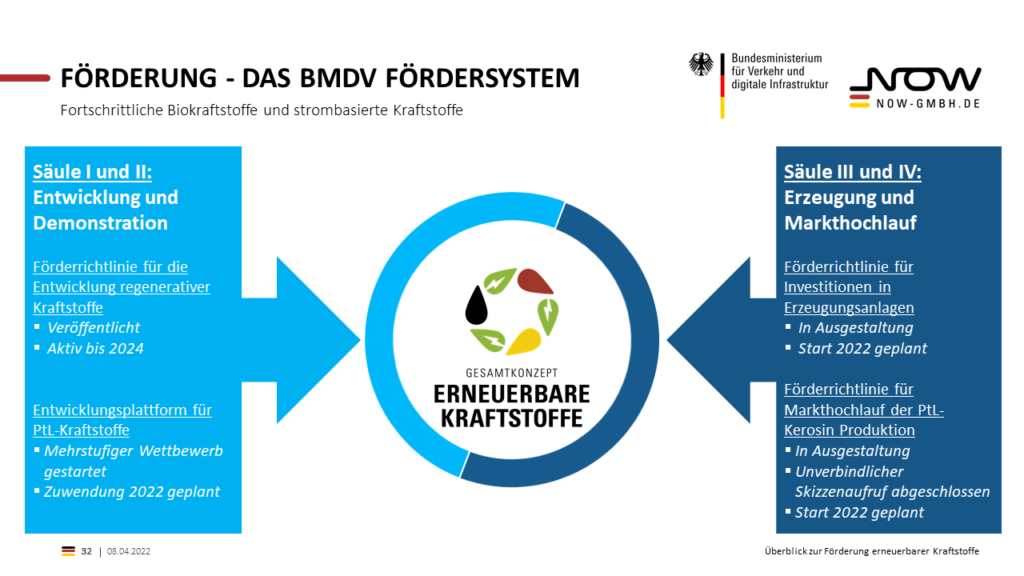 Eine detaillierte Übersicht über die Fördermaßnahmen ist auf der Webseite erneuerbarekraftstoffe.de zu finden.